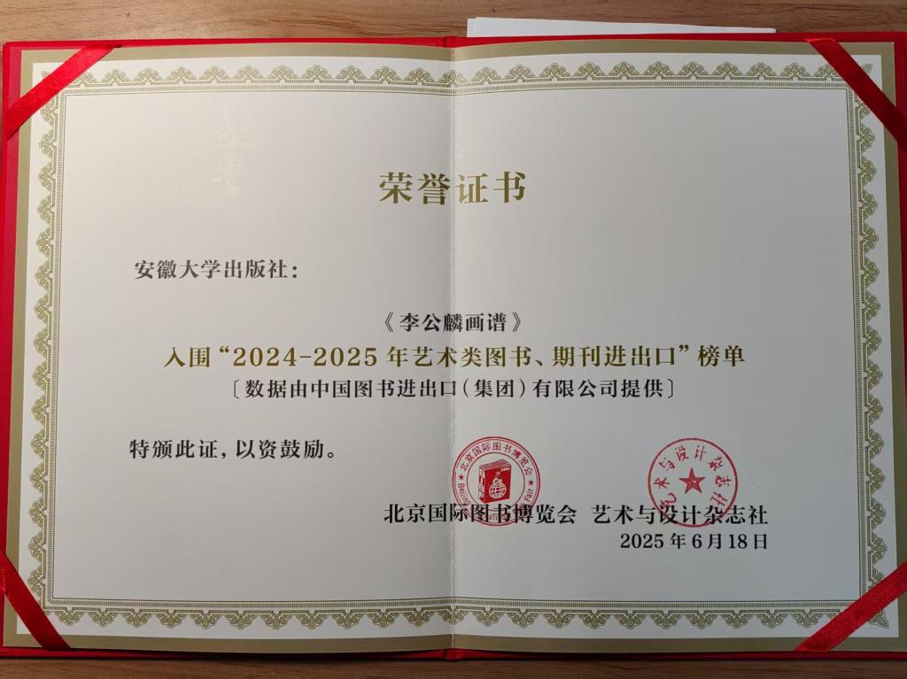 近日,由中国图书进出口(集团)有限公司主办的第三届北京国际艺术出版论坛在国家会议中心隆重召开。会上,发布了“2024-2025年艺术类图书、期刊进出口榜单”。该数据由中国图书进出口(集团)有限公司提供。本次榜单入选图书、期刊共计29种,其中国内图书学术著作10种,大老爷娱乐城 凌郁之教授承担的国家社科基金后期项目结项成果、安徽大学出版社出版的《李公麟画谱》(英语题目:The Complete Documentation of Li Gonglin’s Painting Art)入选。