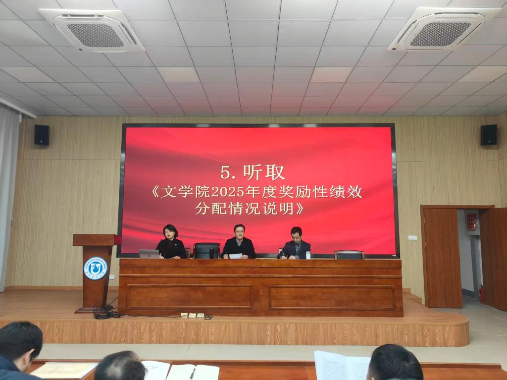 2025年度奖励性绩效分配说明》。报告中,路海洋院长全面客观地总结了学院2025年工作的成绩与不足,分析了学院当前所面临的机遇与挑战,明确了今后一个阶段学院的工作重点。未来,学院将在学校党委的坚强领导下,紧紧围绕立德树人的根本任务,加快内涵建设,提升教育质量,对照“十五五”发展规划确定的目标任务,全力冲刺,努力实现高质量发展。与会教职工对上述报告进行了充分讨论,提出了许多建设性意见和建议。