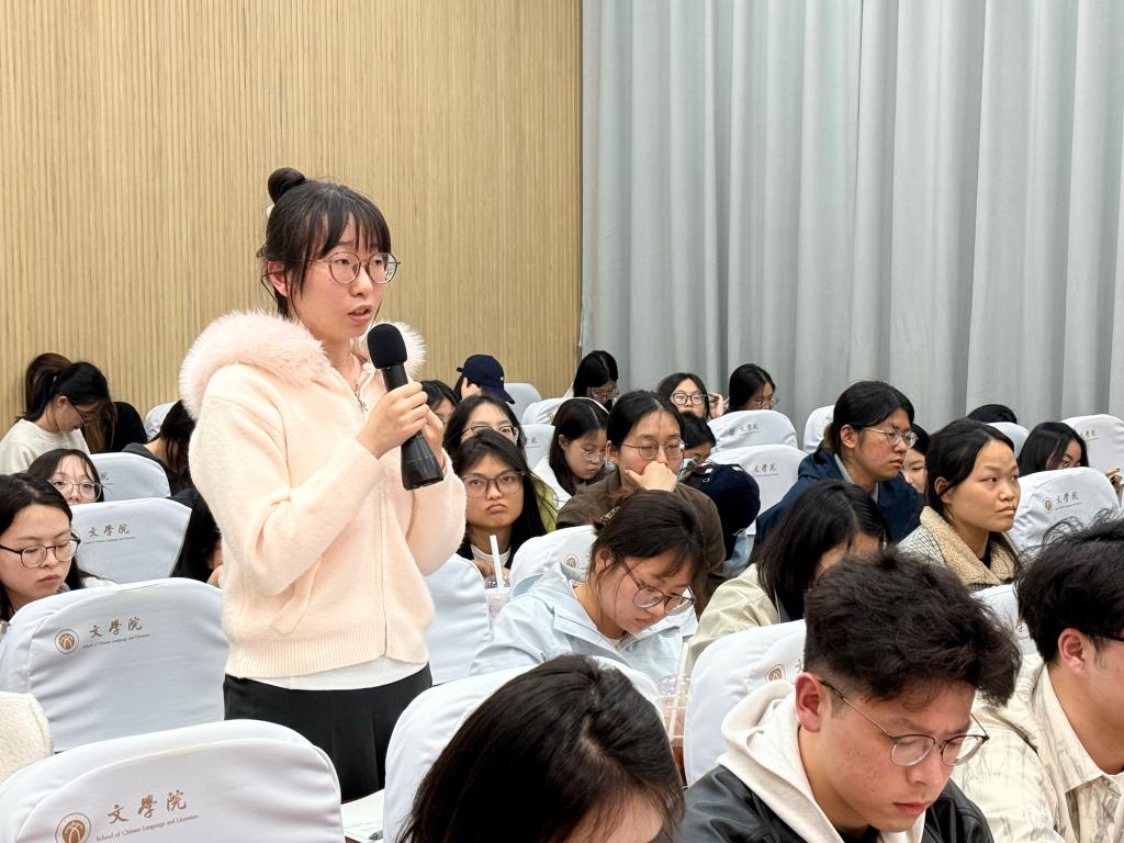 在随后的互动交流环节,与会同学围绕语文文本研读方法、课堂教学设计优化、青年教师专业成长等主题踊跃提问。黄厚江教授勉励青年学子:要坚守课堂主阵地,深耕文本细读,在扎实的教学实践中全面落实语文核心素养培养目标,于深度解读中探寻语文教育的内在价值与持久魅力。