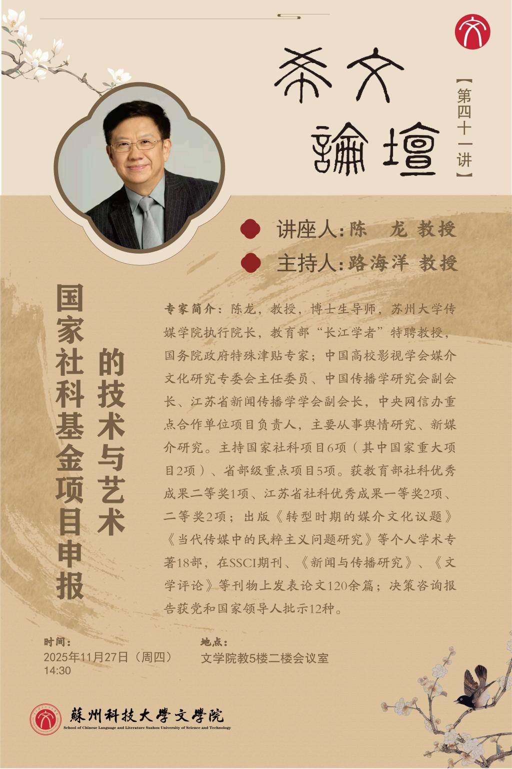 【希文论坛】第四十一讲:国家社科基金项目申报的技术与艺术