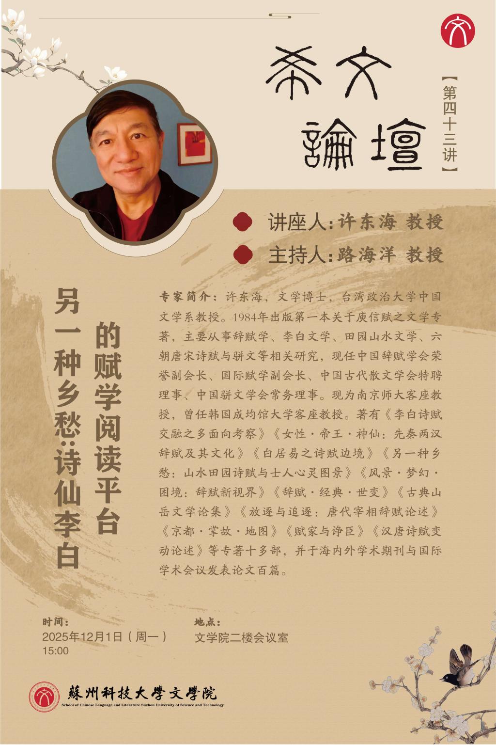 【希文论坛】第四十三讲: 另一种乡愁:诗仙李白的赋学阅读平台