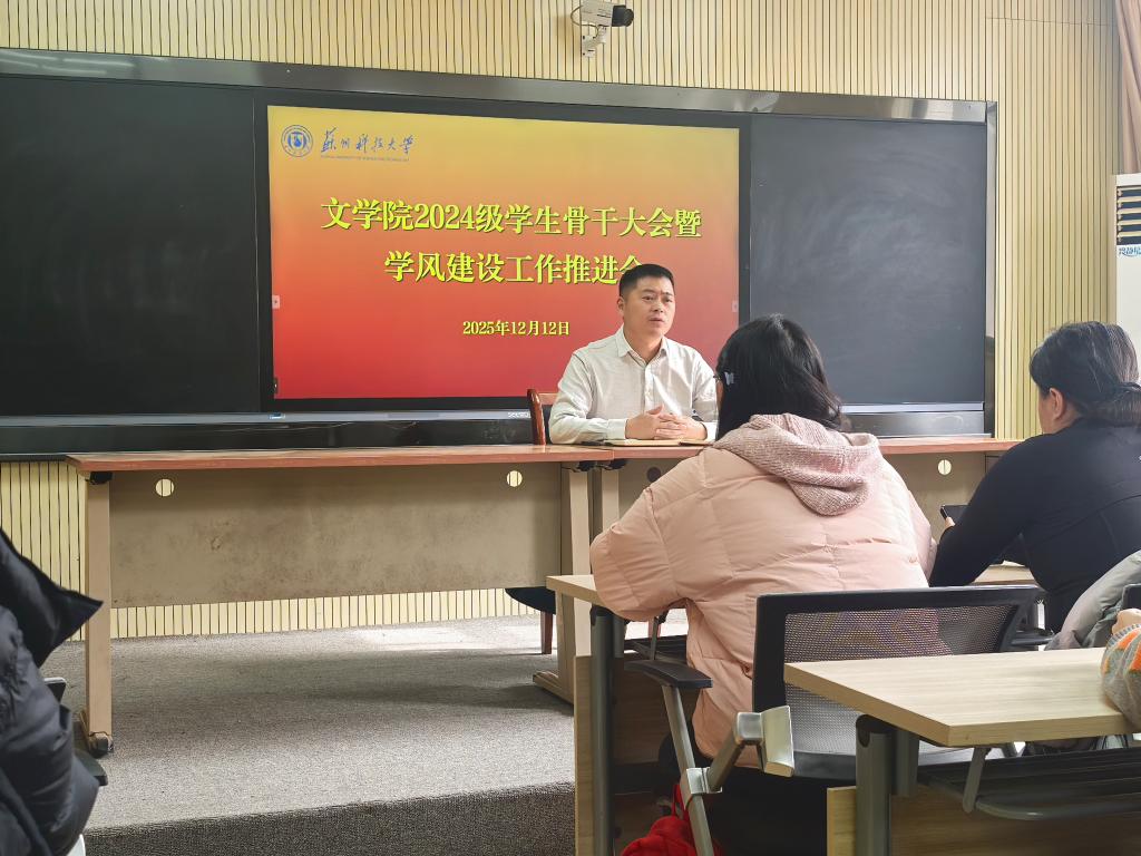 于12月12日召开2024级学生骨干大会暨学风建设工作推进会。会议由24级辅导员孙佳明主持,24级全体班长、团支书及学委参加会议。