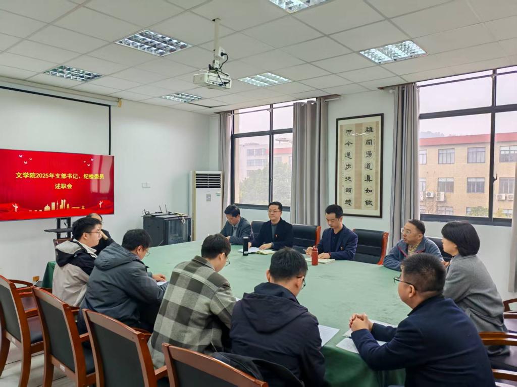 会上,中文教师党支部、广电国教教师党支部、学生第一党支部、学生第二党支部的书记依次进行现场述职。四位支部书记紧扣职责,围绕2025年度支部工作重点,从政治建设、思想建设、组织建设、作风建设、纪律建设等方面进行了全面梳理和总结。汇报内容详实,亮点突出,既展示了一年来各支部在强化党员理论武装、规范落实“三会一课”制度、扎实开展主题党日活动、积极发展党员、发挥战斗堡垒作用等方面取得的扎实成效,也坦诚剖析了当前工作中存在的不足,并提出了未来工作的改进思路和努力方向。